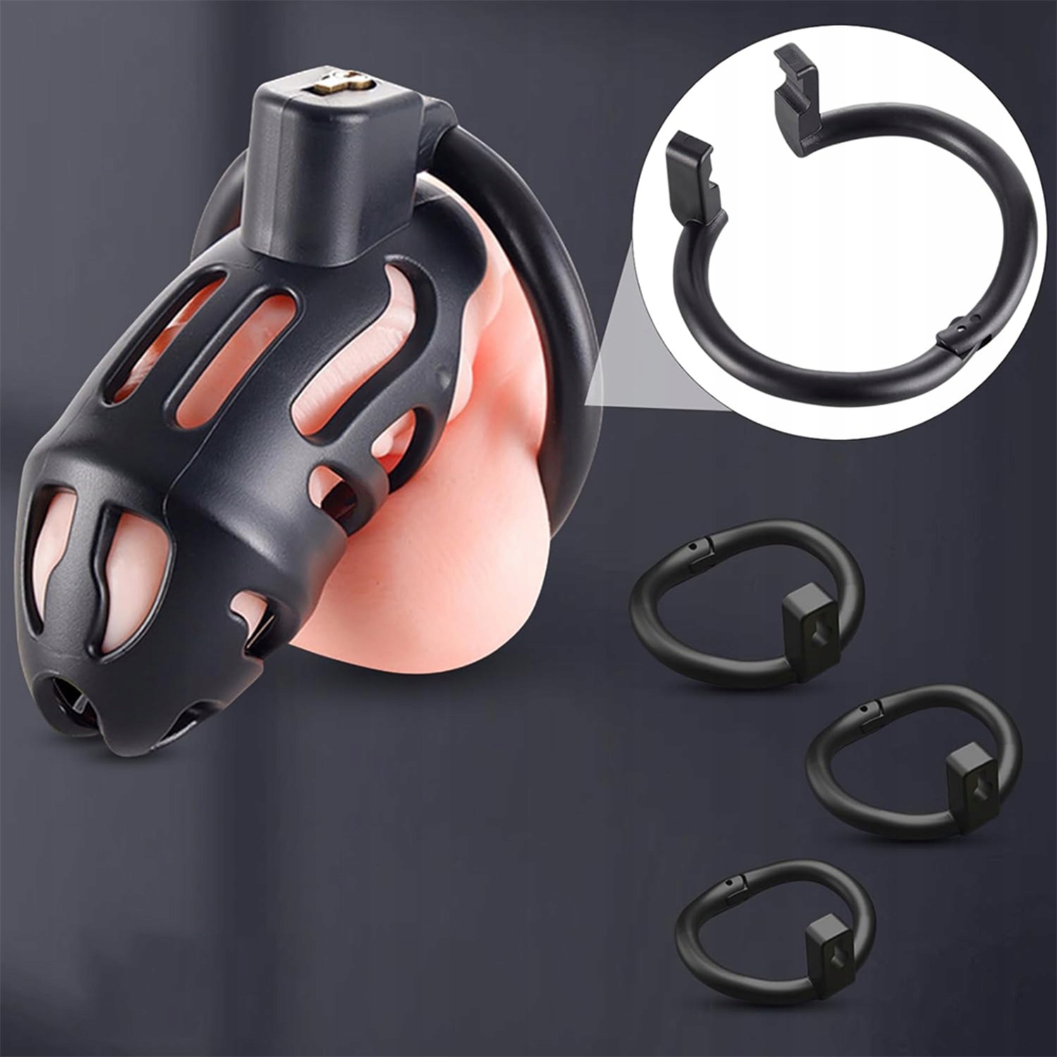 - Наша клітка для пеніса доступна з кільцями трьох різних розмірів, що дозволяє вибрати відповідно до ваших індивідуальних потреб, забезпечуючи ідеальну посадку без ковзання.