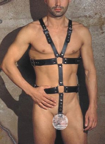 Білизна для справжніх чоловіків. Чорний шкіряний нагрудний ремінь з кільцем для пеніса. Чоловік в такому вбранні схвилює будь-яку жінку. Це ідеальний спосіб здивувати свого партнера. Також ідеально підходить для стриптизерок / chipenteis. Чоловіча білизна для сміливих! Це те, чого хоче кожна жінка. Вініл, Латекс, Шкіра, Лайкра