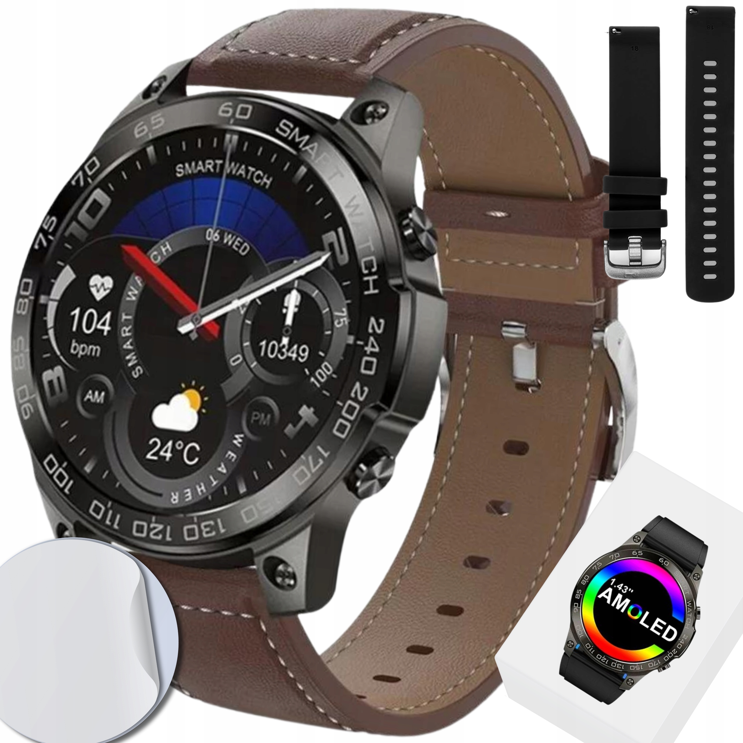 ЧОЛОВІЧИЙ РОЗУМНИЙ ГОДИННИК AMOLED З ФУНКЦІЄЮ РОЗМОВИ PULSE, ПОЛЬСЬКИЙ, 2 РЕМІНЦІ