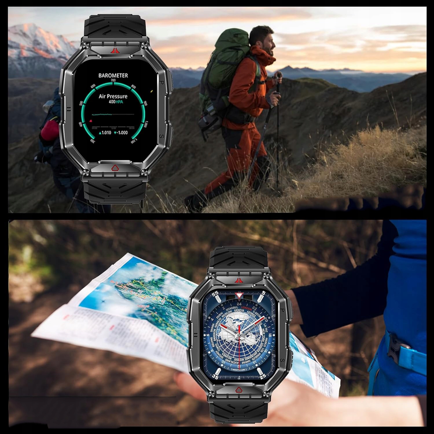 - ☑️Тактичні розумні годинники мають найновішу функцію компас і точно вказуйте напрямок, щоб безпечно знайти свій шлях серед природи та поганої погоди, дозволяючи чітко розрізняти всі напрямки навіть на вулиці.