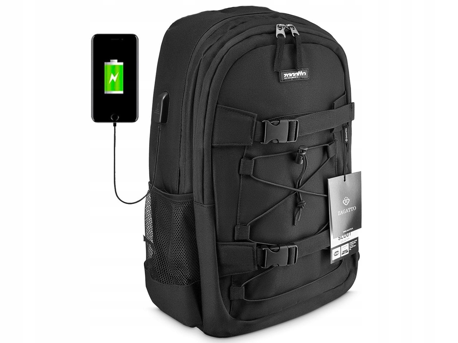 Чоловічий рюкзак A4 чорного кольору з жіночим USB-портом ZAGATTO
