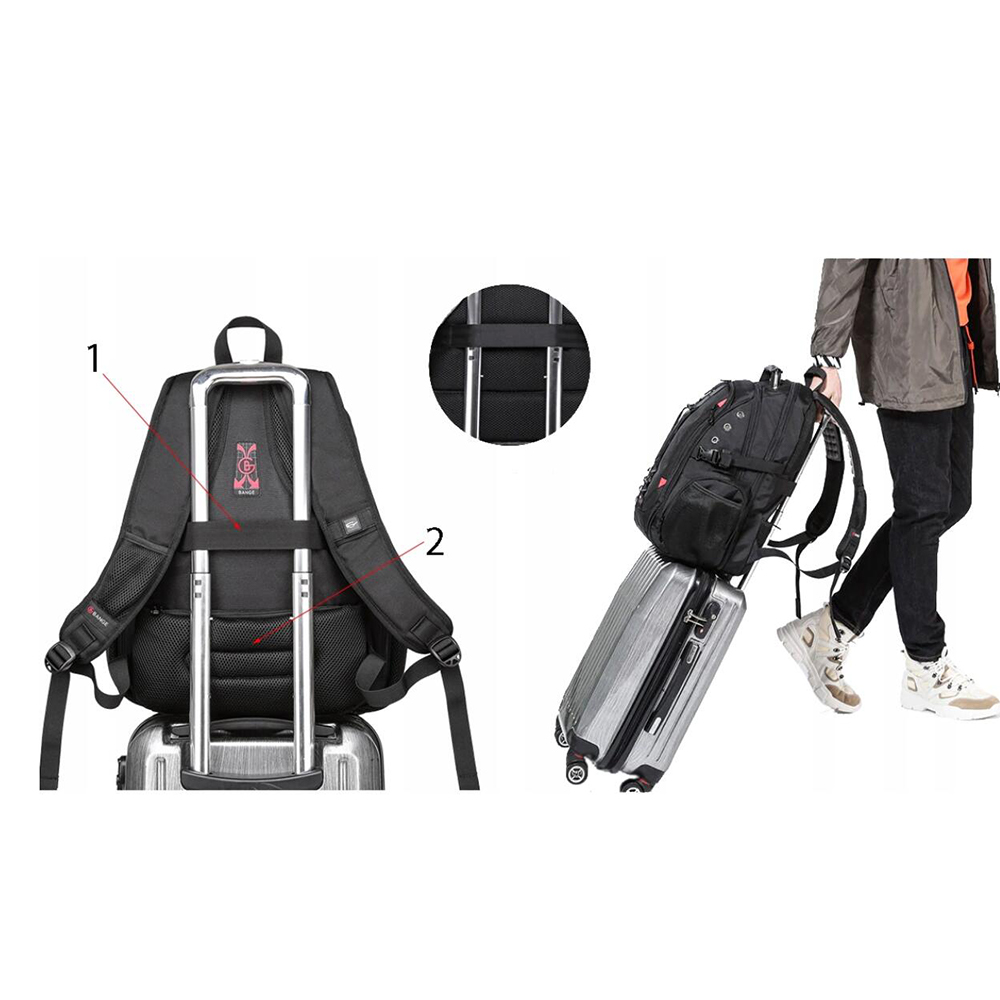 Зручна, посилена ручка, подвійно посилена додатковою металевою мотузкою та гумовим чохлом, дозволяє тримати рюкзак у руці або безпечно його повісити. Ззаду є спеціальний стабілізуючий ремінь, який ідеально пристосовується до поперечин найбільш часто використовуваного багажу на колесах