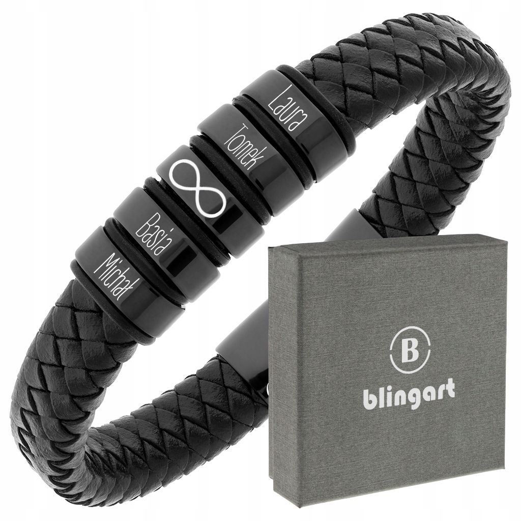 Чоловічий шкіряний браслет ГРАВІЮВАННЯ імен FAMILY
