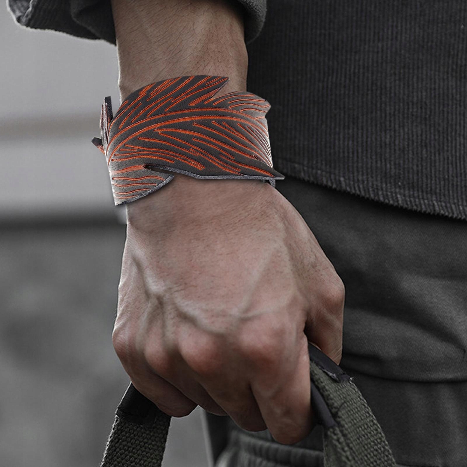 Чоловічий шкіряний браслет ручної роботи з широкими манжетами