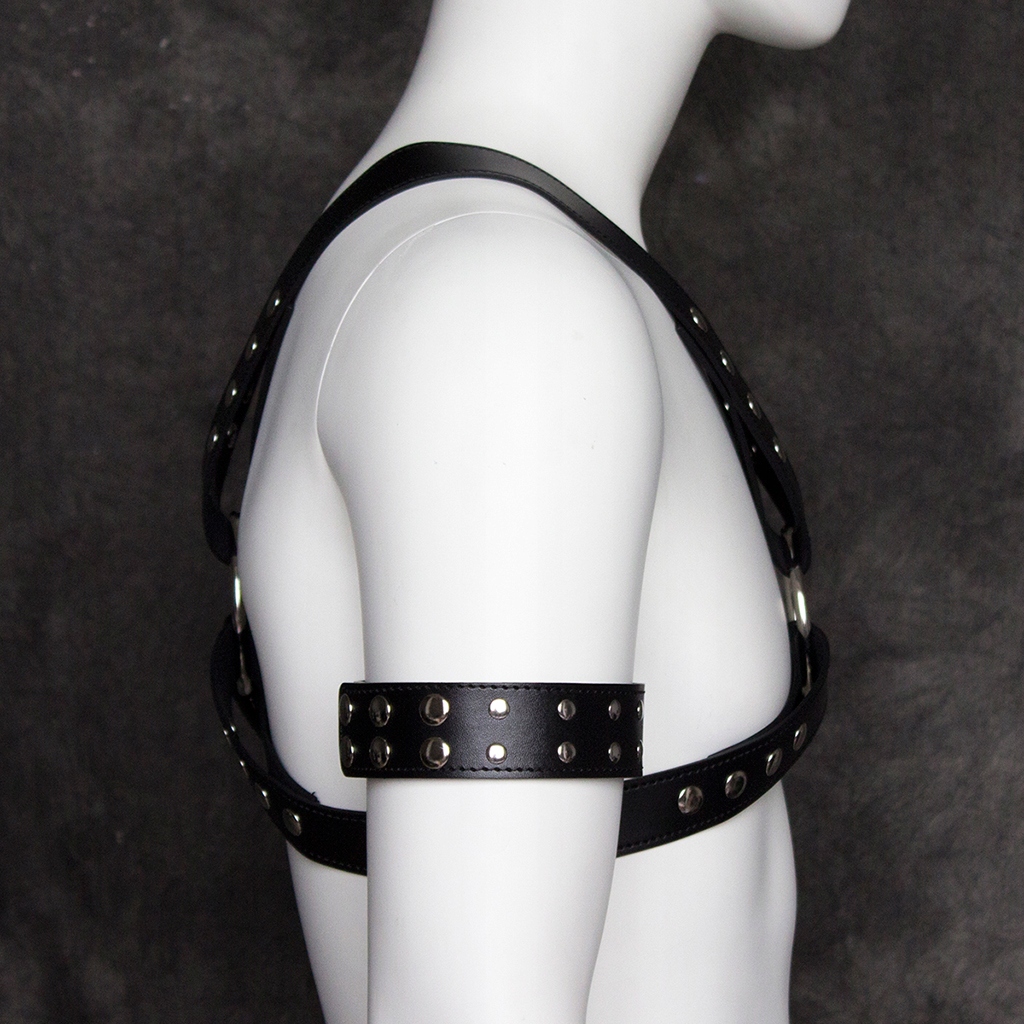 Чоловічий шкіряний нагрудний ремінь з плечовим ременем, металевими шпильками та кільцями, регульований, універсальний розмір