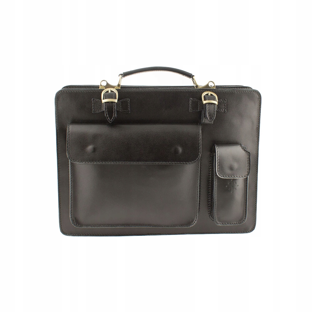 - На передній частині портфеля є дві привабливі кишені, що застібаються на застібки (наприклад, для ручок, телефону та інших дрібних речей), і знімні ремінці для кріплення парасольки чи газети,