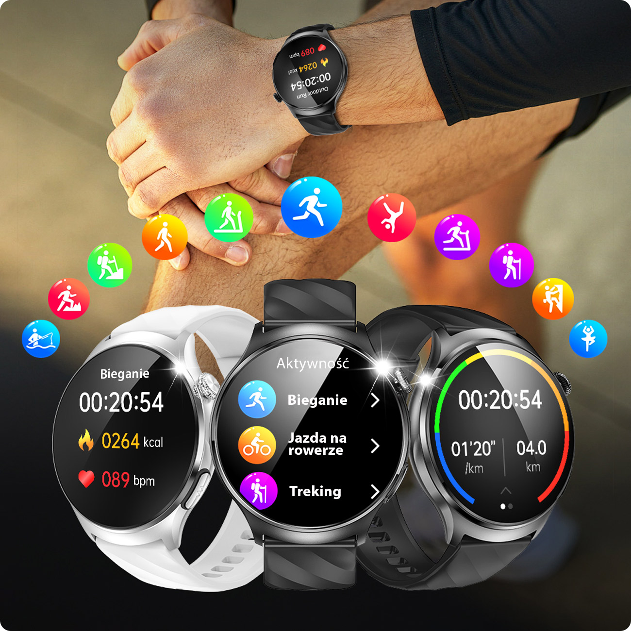 Чоловічий смарт -годинник - Польське меню ЕКГ -цукрові вимірювання ІМТ -розмови