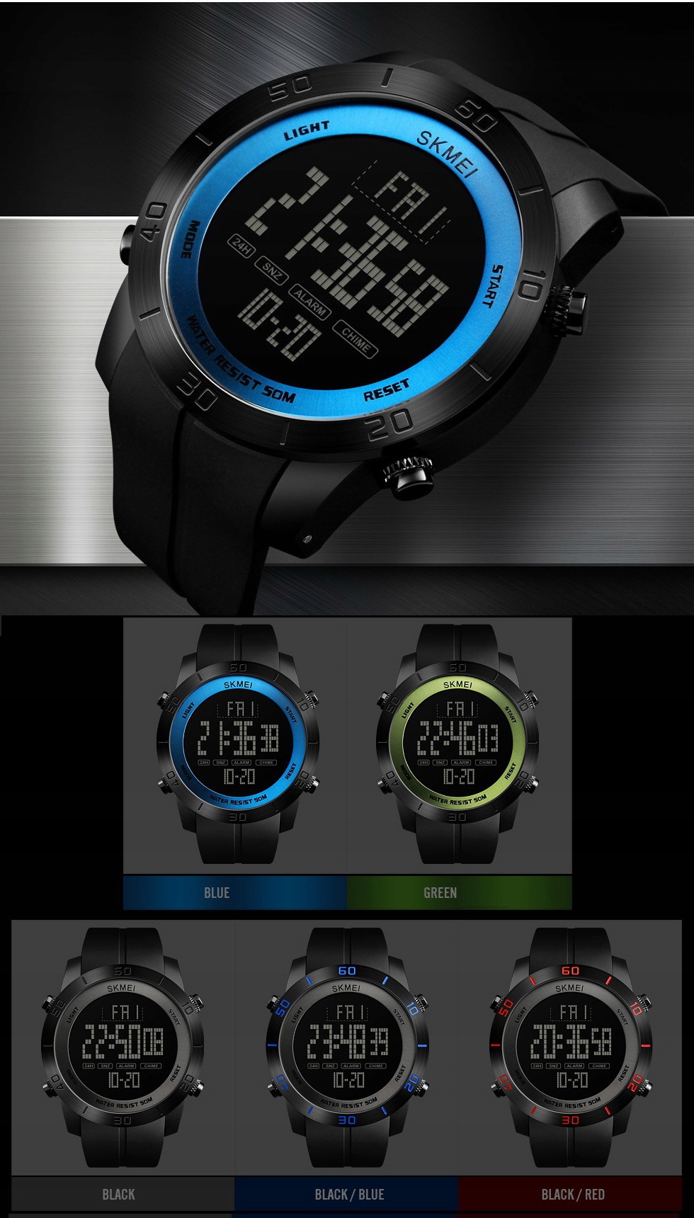 2. УДАРОСТІЙКИЙкорпус годинника з твердого ABS-пластику та металевого сплаву.