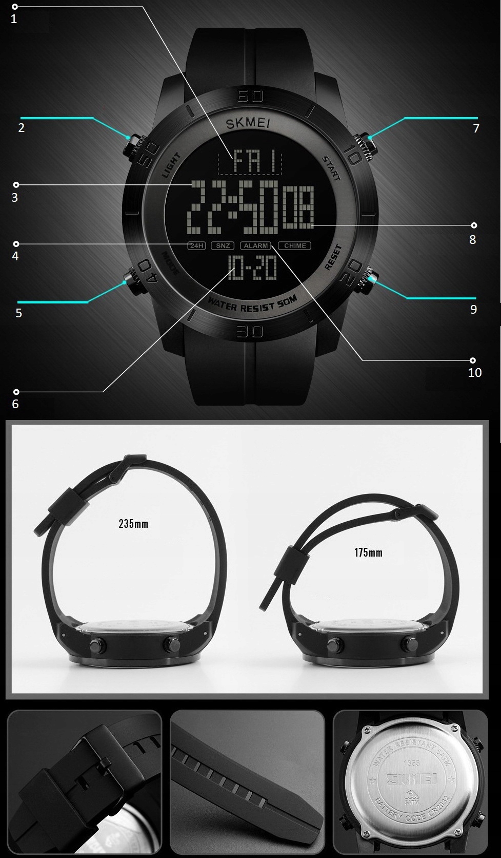4. Задня кришка виготовлена з корозійностійкої НЕржавіючої сталі, водонепроникна до 50 м.