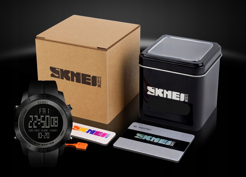 Кожний годинник поставляється з оригінальною металевою коробкою безкоштовно! Чорна металева коробка зі сріблястим логотипом SKMEI дуже елегантна та ідеальна як подарунок. Вам не потрібно купувати його додатково. У нас ви можете купити оригінальний продукт в оригінальній упаковці SKMEI.