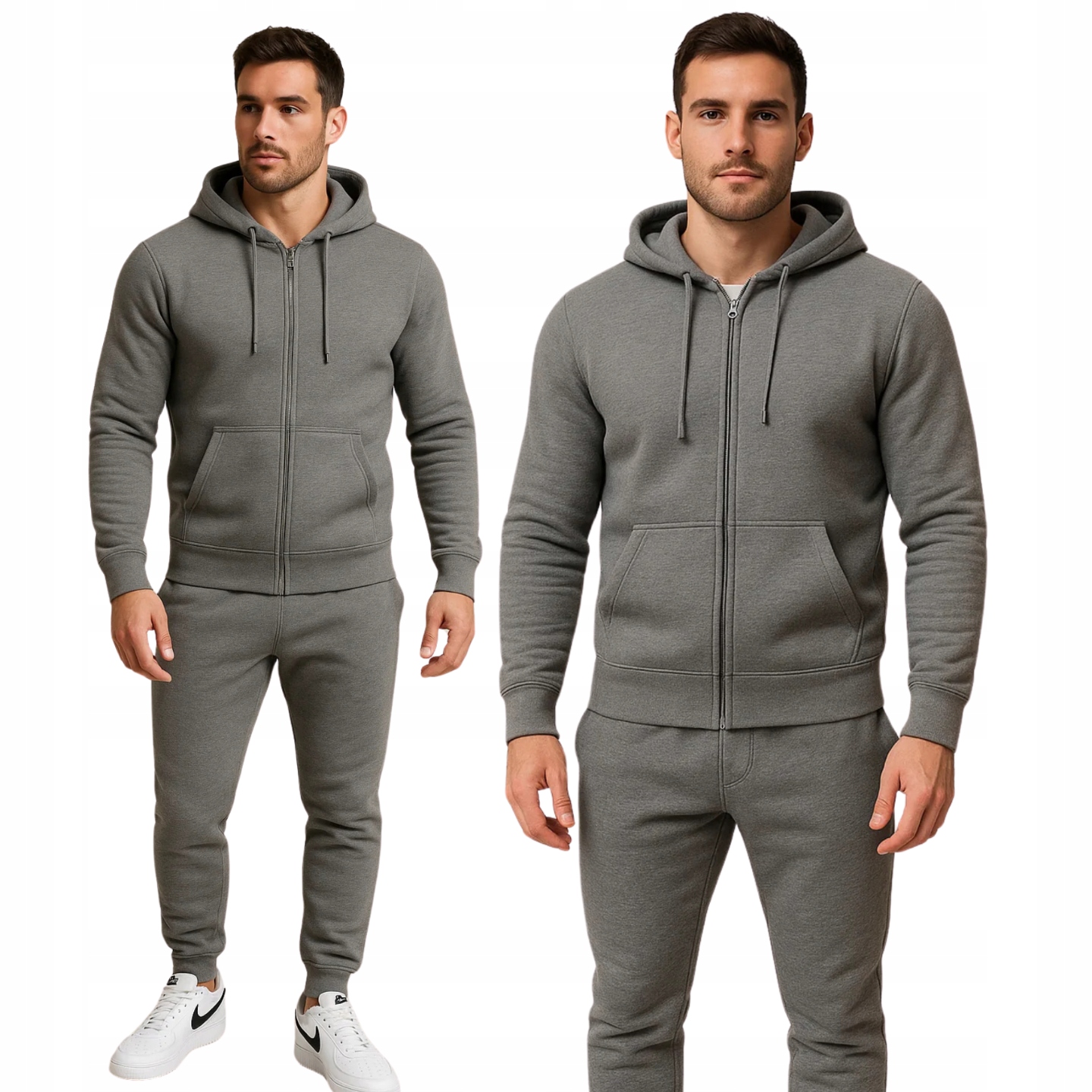 ЧОЛОВІЧИЙ СПОРТИВНИЙ КОМПЛЕКТ, ТЕМНО-СІРИЙ КОСТЮМ З КАПЮШОНОМ І НА БЛИСКАВЦІ XXL