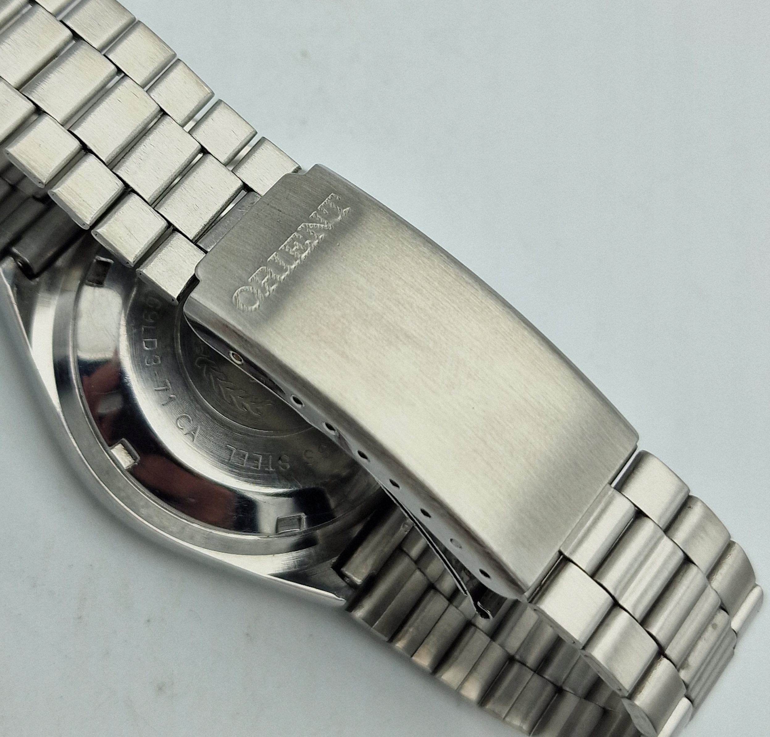 - сталевий конверт. Задня кришка, що загвинчується, підписана написом: «ORIENT, WATER RESISTANT, ALL Stainless STEEL». Оригінальне мереживо в ідеальному стані. Конверт майже в ідеальному стані, як на фото.