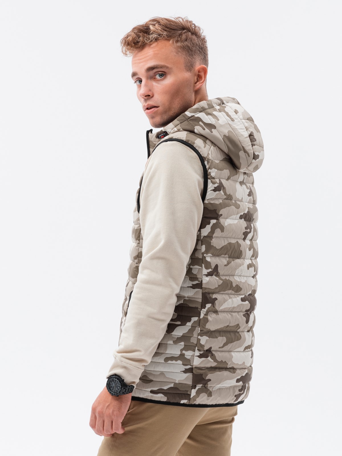 Чоловічий стьобаний жилет V53 - коричневий камуфляж S