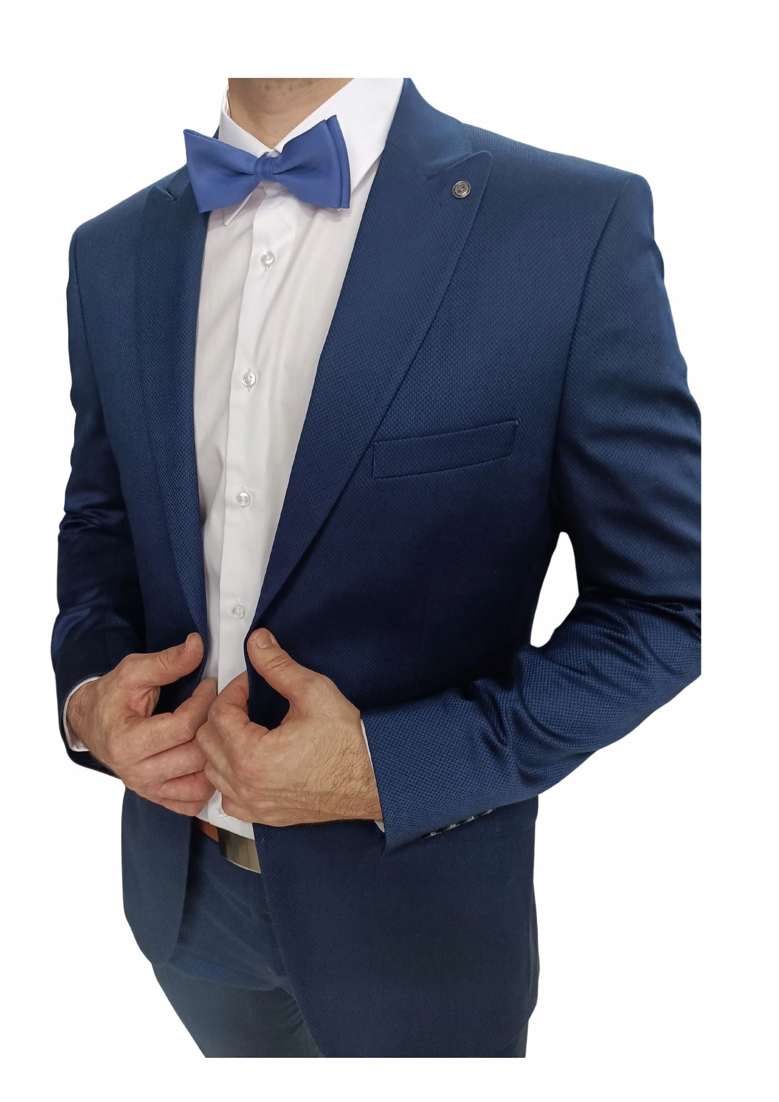 Чоловічий темно-синій костюм із рельєфною структурою, що робить його позачасовим. Приталений крій ідеально підкреслить достоїнства чоловічої фігури. Піджак застібається на два гудзики, має відкриті лацкани, розрізну складку та два шви, класичний крій. Це робить його придатним для багатьох випадків. Кишені з клапаном і внутрішні кишені роблять його практичним. Штани, запресовані в класичну складку, ідеально стрункають чоловічу фігуру.
