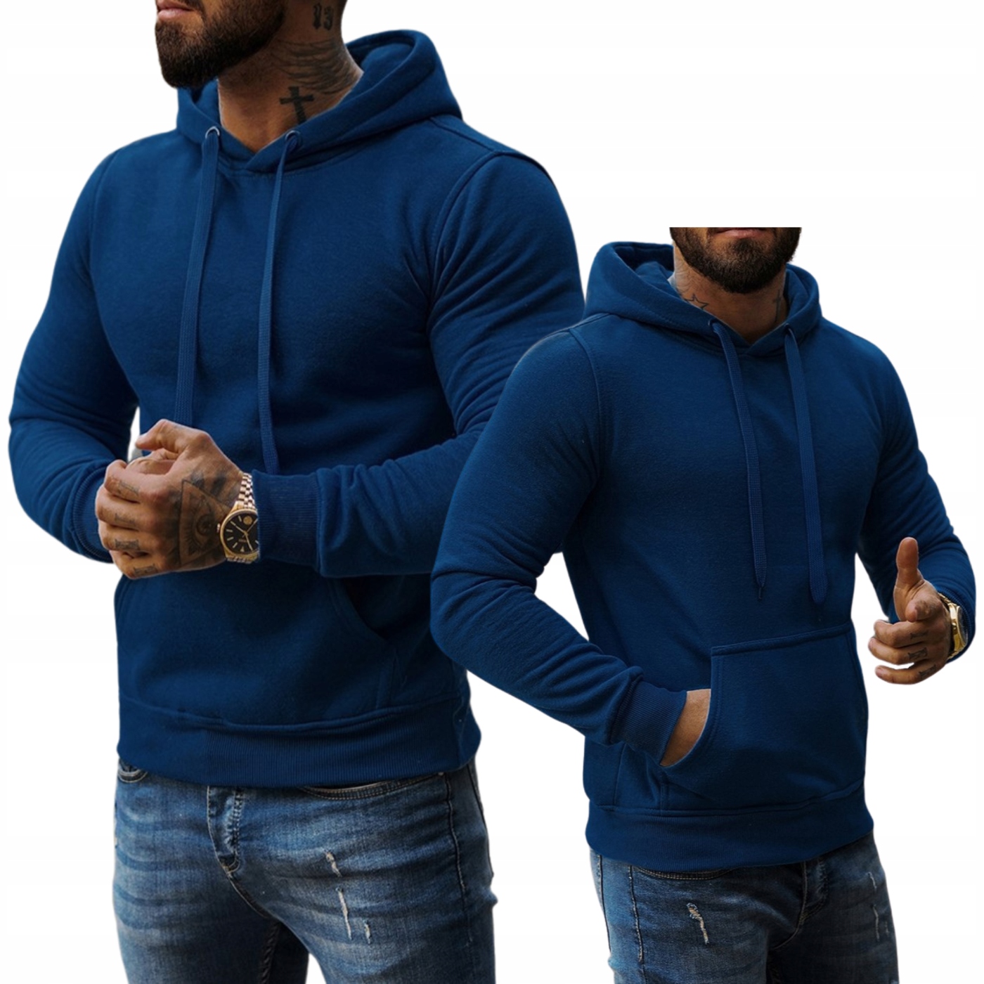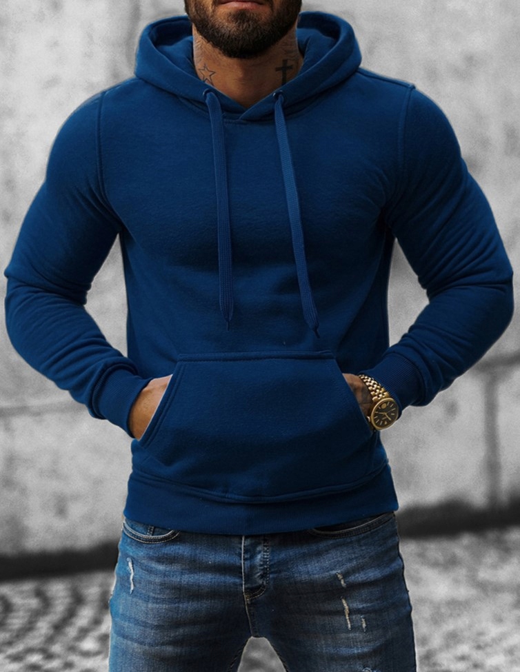 ЧОЛОВІЧИЙ ТЕМНО-СИНІЙ СВІТШОТ З КАПЮШОНОМ - КИШЕНЯ КЕНГУРУ - УТЕПЛЕНИЙ M