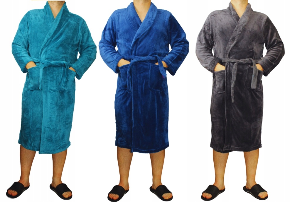 ЧОЛОВІЧИЙ ТЕПЛИЙ ХАЛАТ, ПРИЄМНИЙ НА ДОТИК, МІШ КОЛЬОРІВ, РОЗМІР L