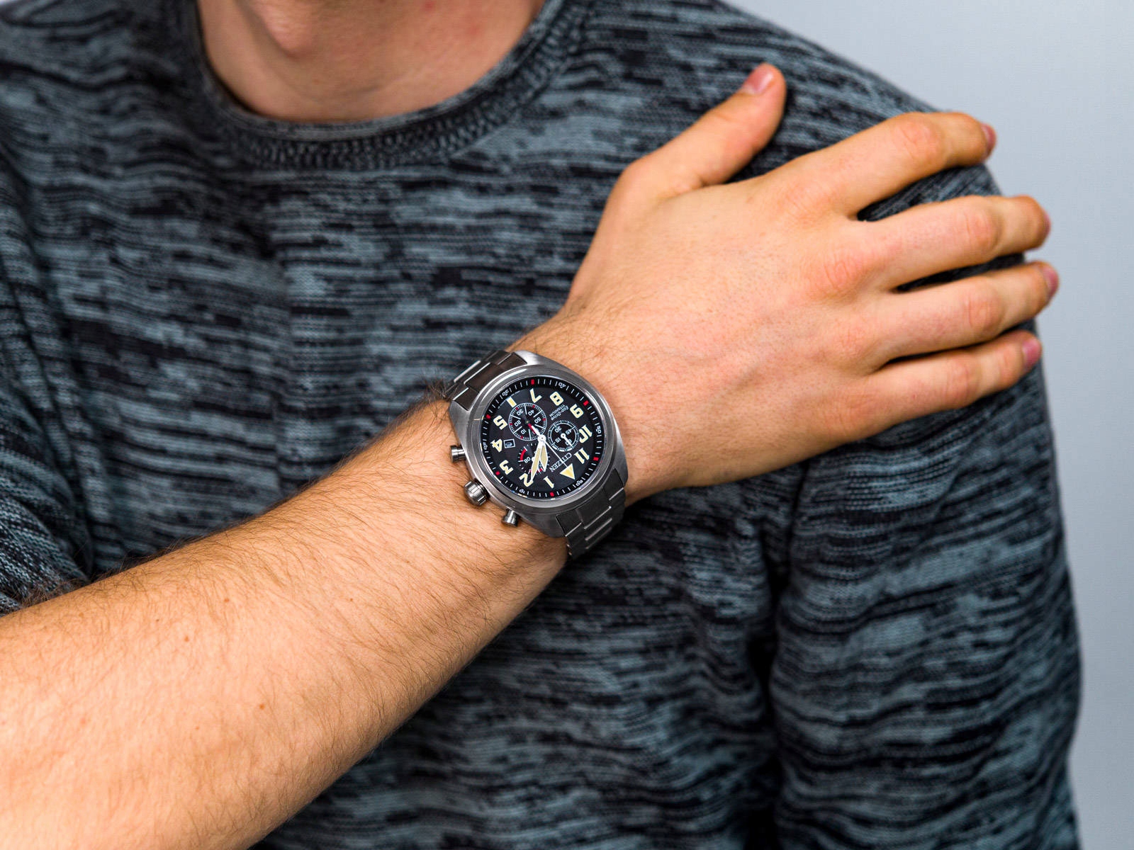 Корпус і браслет виготовлені з титану, годинник характеризується малою вагою.