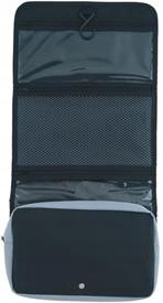 Елегантна та функціональна дорожня косметичка з високоякісних матеріалів у практичних чорно-сірих кольорах.