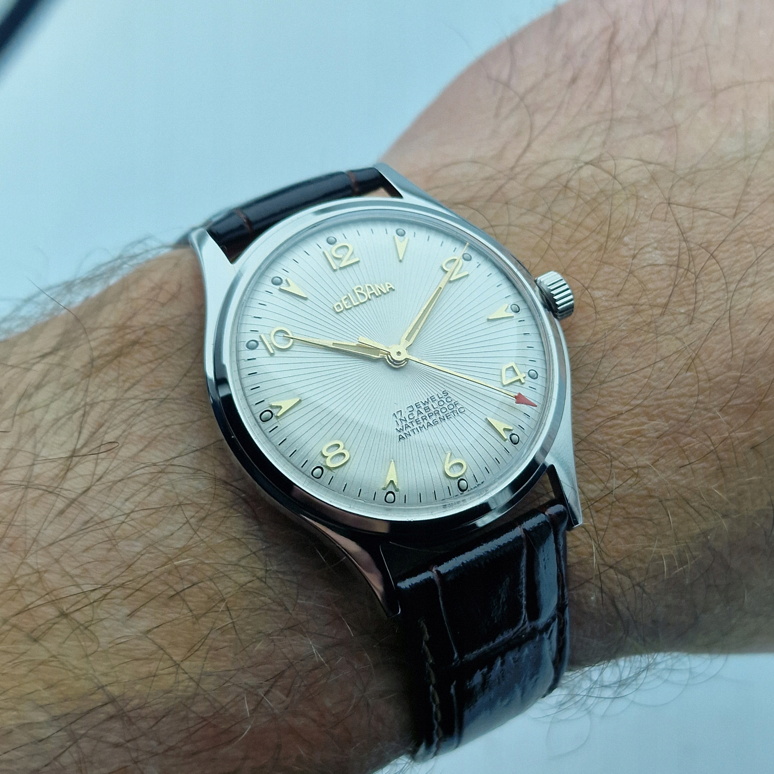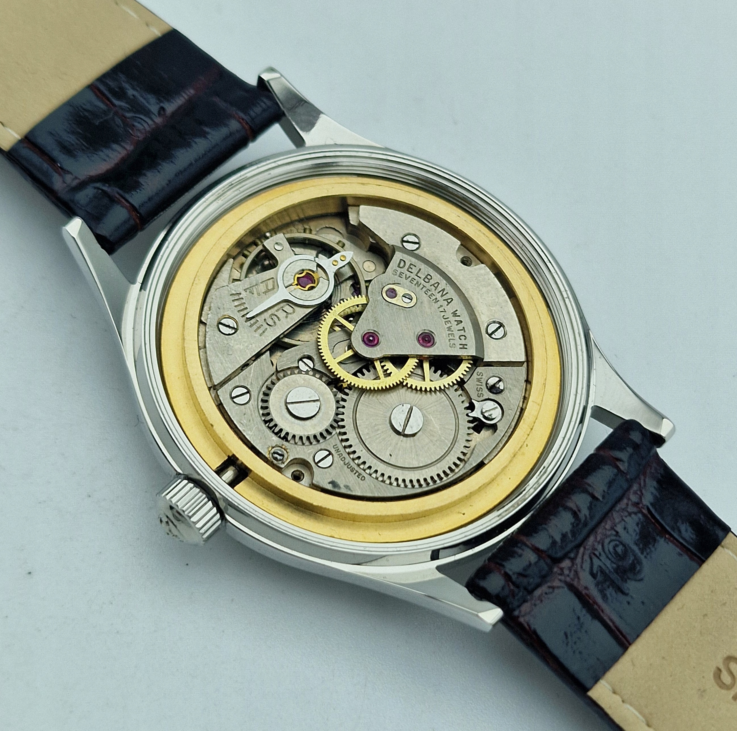 ЧОЛОВІЧИЙ ВЕЛИКИЙ МЕХАНІЧНИЙ НАРУЧНИЙ ГОДИННИК DELBANA 1950-Х - ІДЕАЛЬНИЙ
