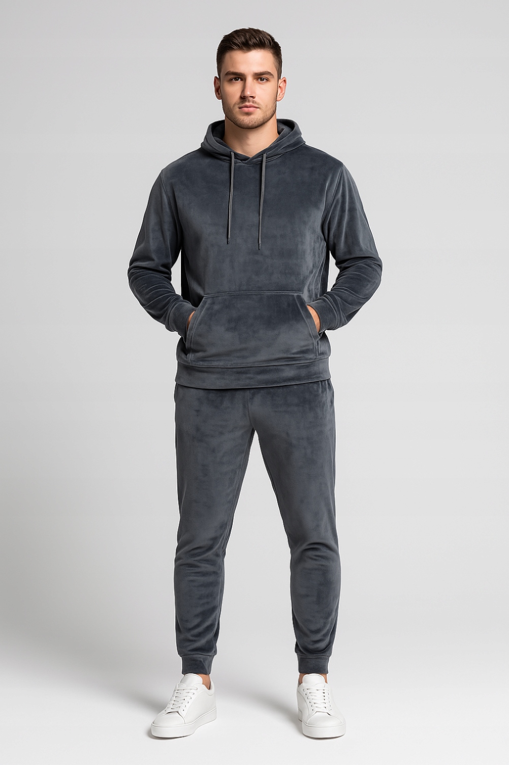 Чоловічий велюровий набір - темно -сірий трек -костюм - з капюшоном m