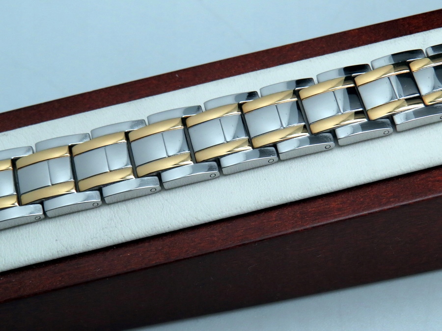 У цій пропозиції ми представляємо виключно елегантну чоловічу модель магнітного браслета, який виготовлений з ХІРУРГІЧНА СТАЛЬ 316L ВИЩОЇ ЯКОСТІ, покрита 18-каратним золотом. Ця модель відрізняється дуже елегантним поєднанням золотих і срібних елементів. Така композиція дуже ефектно виглядає на руці і справляє неймовірне враження!!! Це одна з найцікавіших і найбільш продаваних моделей за останній час!