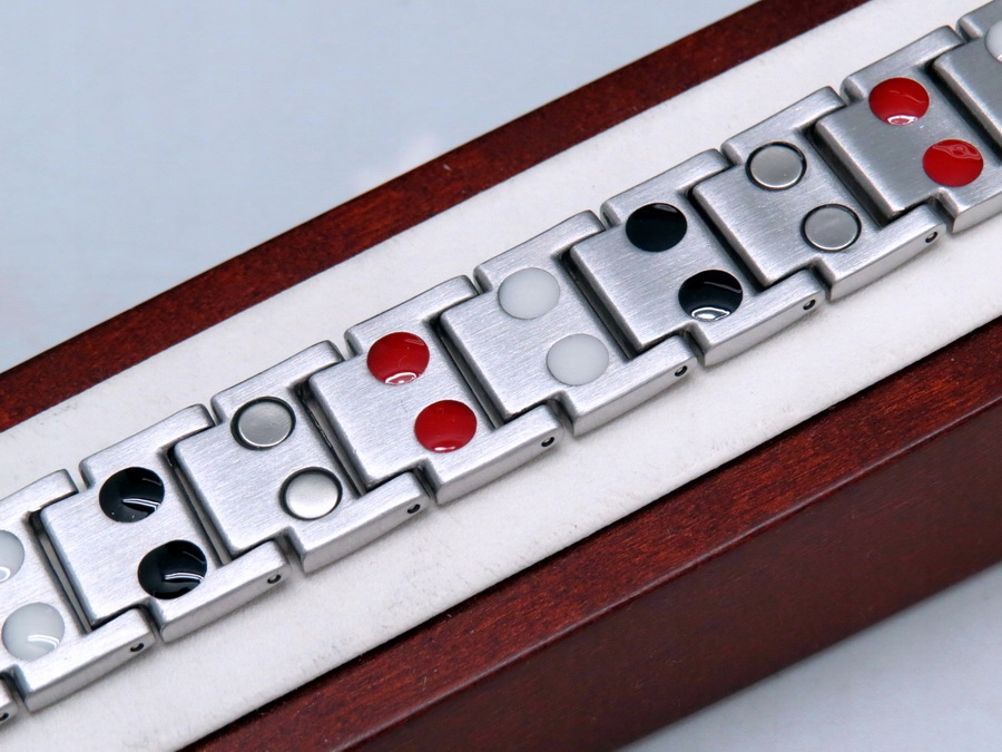 ВИКОРИСТАННЯ ЛИШЕ ОРИГІНАЛЬНИХ НЕОДІМОВИХ МАГНІТІВ ТА АВТЕНТИЧНІ БІОКЕРАМІЧНІ ВСТАВКИ, РОЗМІЩЕНІ У ДВА РЯДИ, ПОДВОЮЮТЬ ПОТУЖНІСТЬ БРАСЛЕТА.