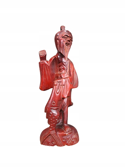 ЧОЛОВІК, АЗІАТ З РИБКОЮ, ДЕРЕВ'ЯНА СКУЛЬПТУРА, висота 25 см