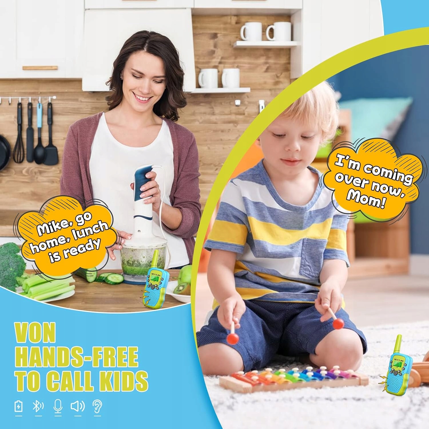 Наші короткі талекі для дітей мають приємну функцію сповіщення про з'єднання, чисту та стабільну якість звуку з регульованим обсягом.