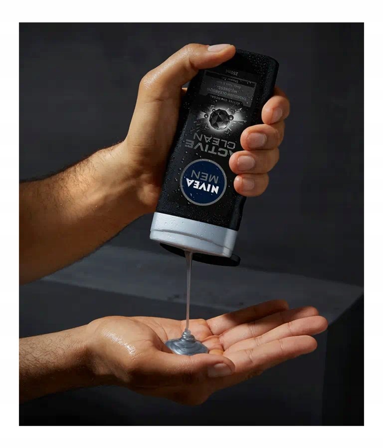 Забезпечте глибоке очищення шкіри та волосся за допомогою чоловічого гелю для душу nivea Active Clean ! Продукт 3in1 призначений для тіла, обличчя і волосся, надає вам комплексну допомогу. Його інноваційна формула була збагачена природним вугіллям походження, яке славиться своїми сильними властивостями, що стосуються - воно діє як магніт на забруднення. Завдяки цьому гель для душу глибоко очищає шкіру та волосся і забезпечує їм тривалий стермський оновлення . Гель для душу має чоловічий запах і завдяки м'якій формулі він підходить для щоденного догляду. Дерматологічно підтверджена толерантність до шкіри.