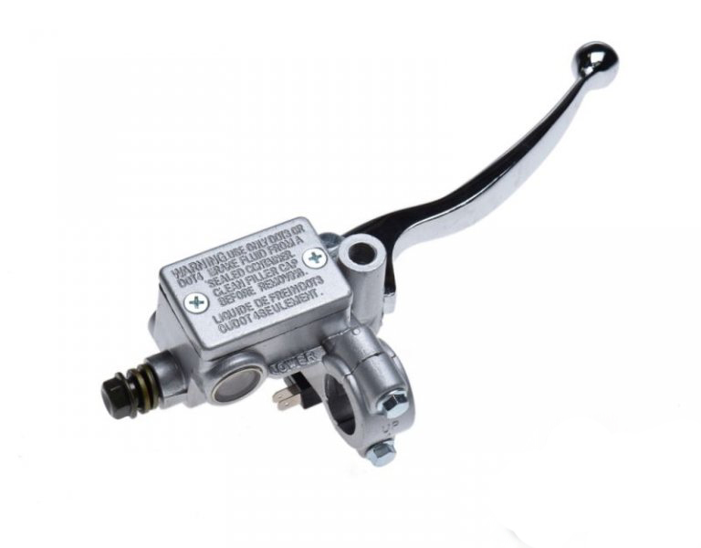 Головний гальмівний циліндр укомплектований важелем, гвинтом, кріпленням на кермі та датчиком зупинки.