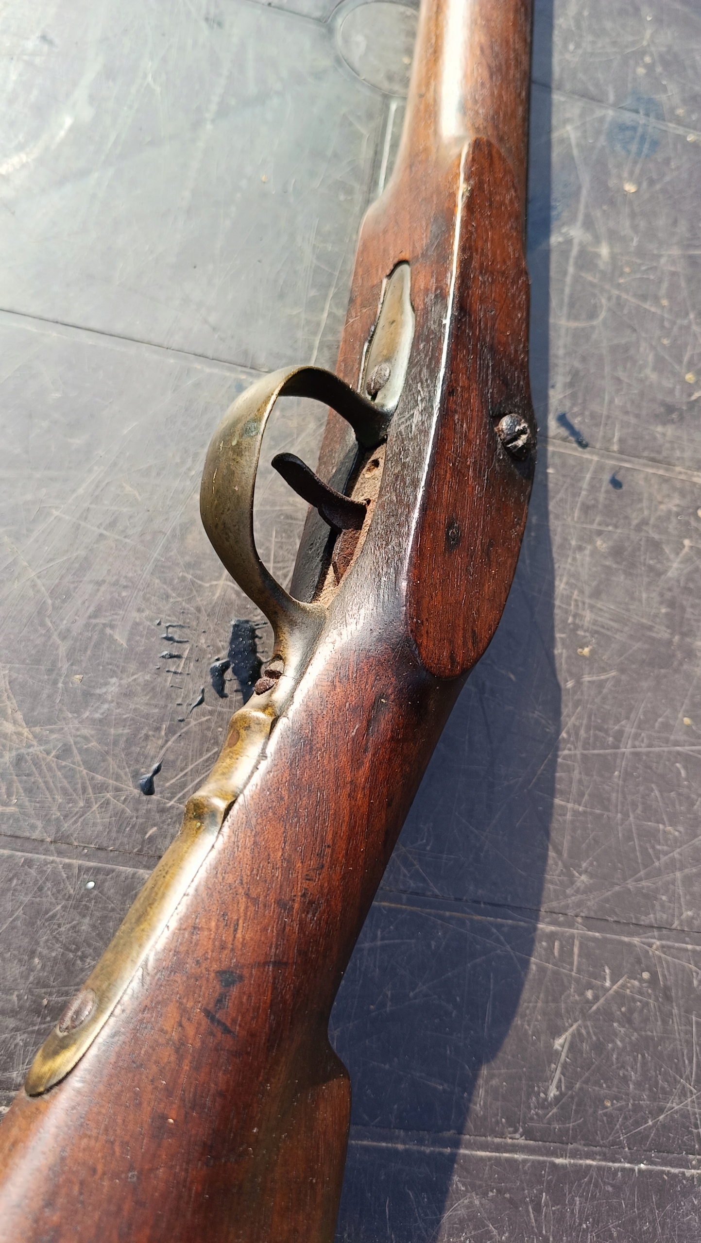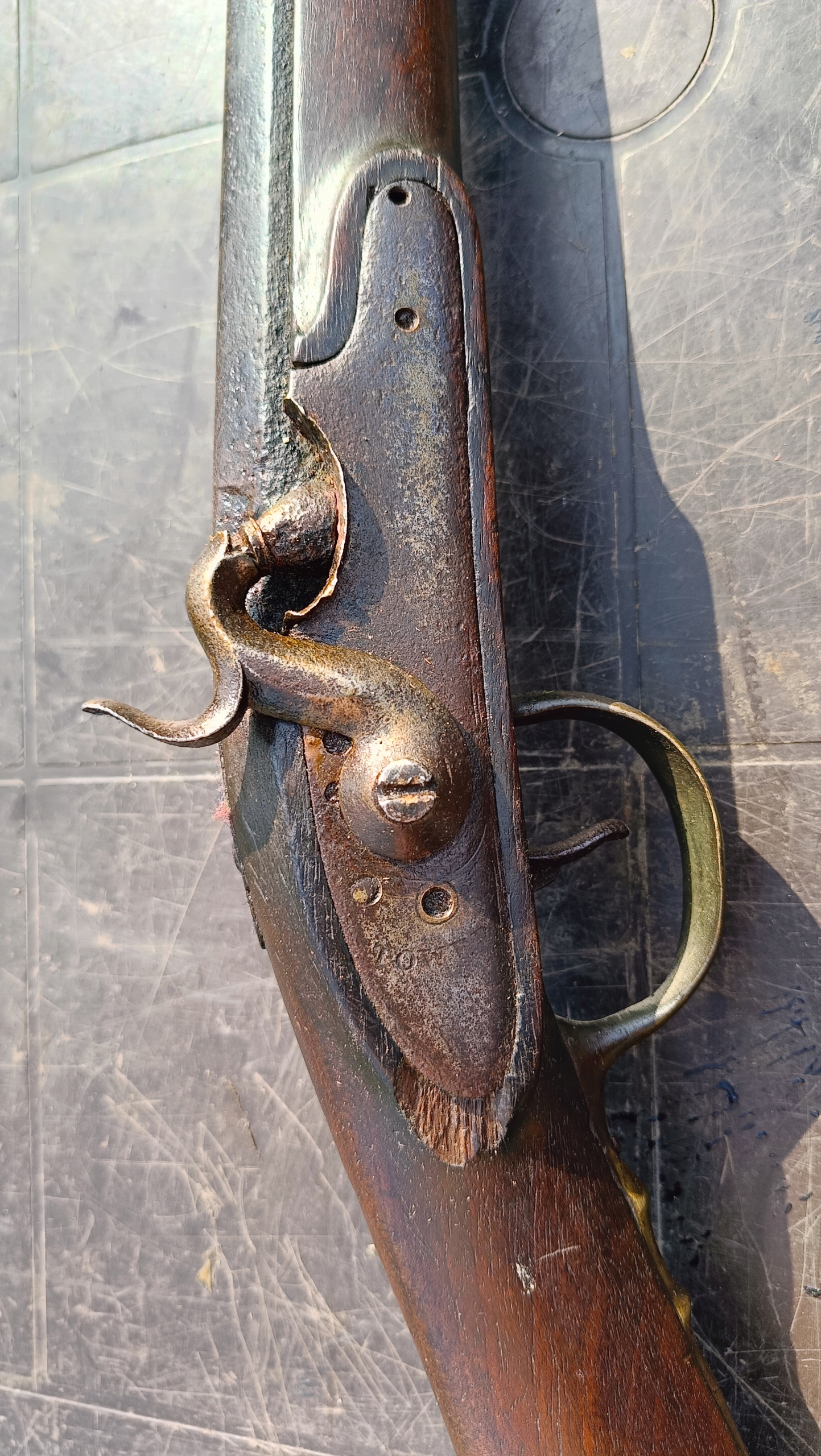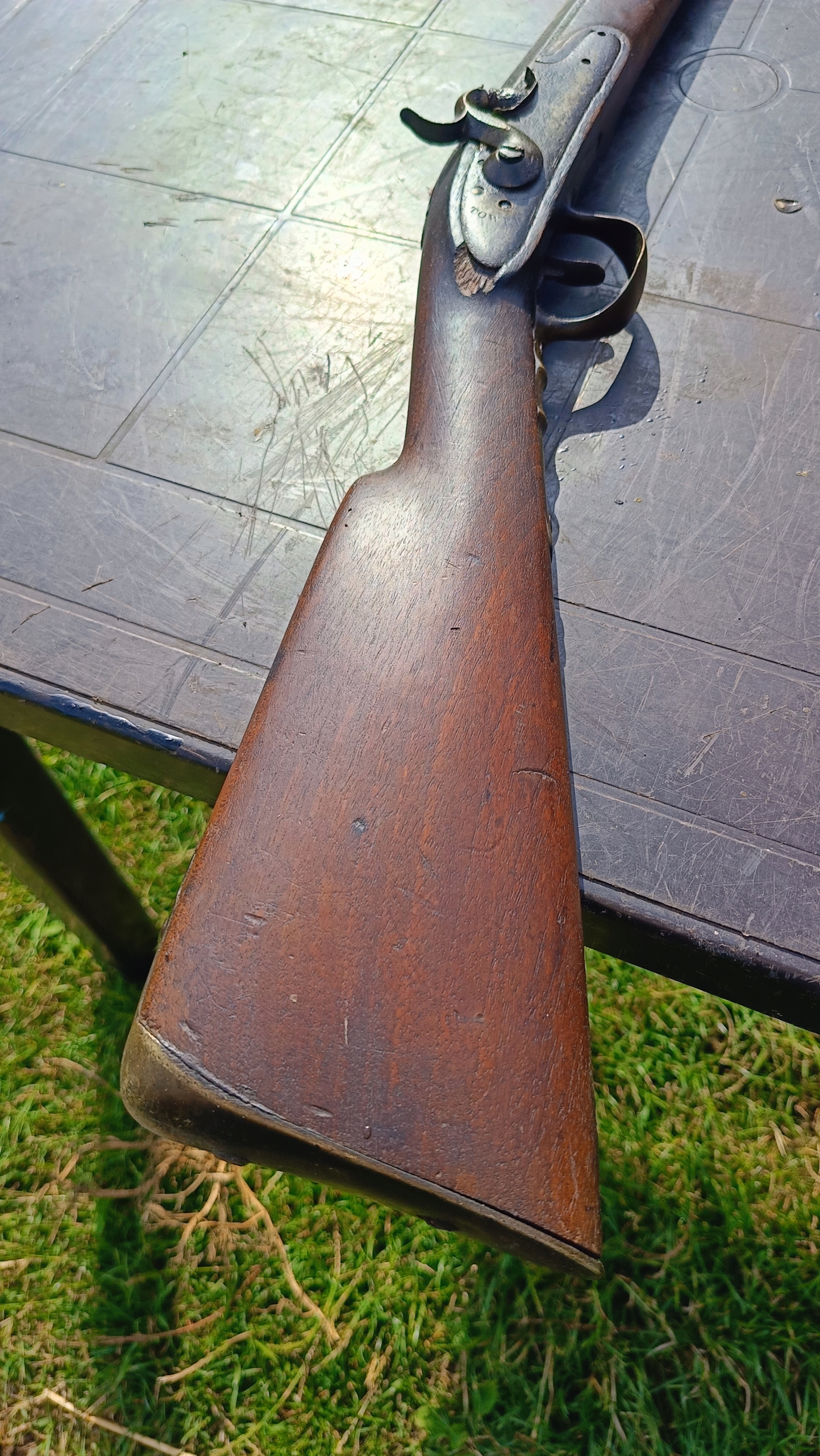 завантажено з фронту. Можна стріляти по сухому пострілу, подвійній напрузі - сильна пружина. Замок тригера затягується до 2 бар. Пряма бочка в хорошому стані. Дерево в хорошому стані. Камін зламаний на обмін- без каші. Відсутність видовища в кінці бочки, і поле битви не є первісним занадто коротким, оскільки більший не ввійде.