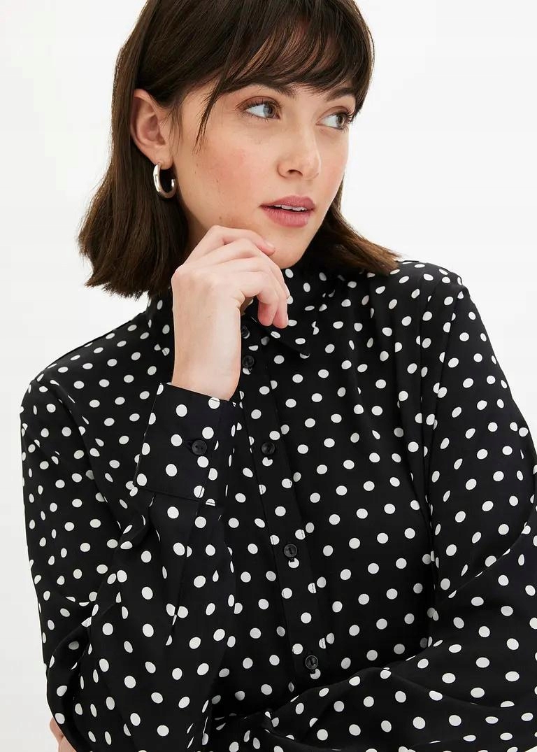Чорна атласна сорочка в горошок з коміром плюс розміром, B.C 50