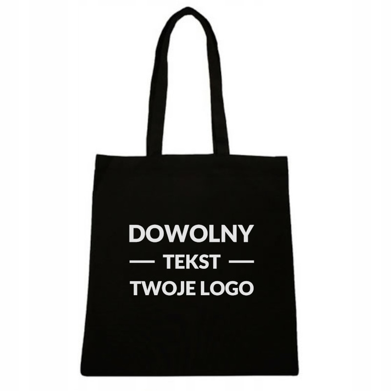 ЧОРНА БАВОВНЯНА СУМКА З ВАШИМ ЛОГОТИПОМ І НАПИСОМ, ІДЕАЛЬНА ДЛЯ ПОКУПКИ З ВИШИВКОЮ
