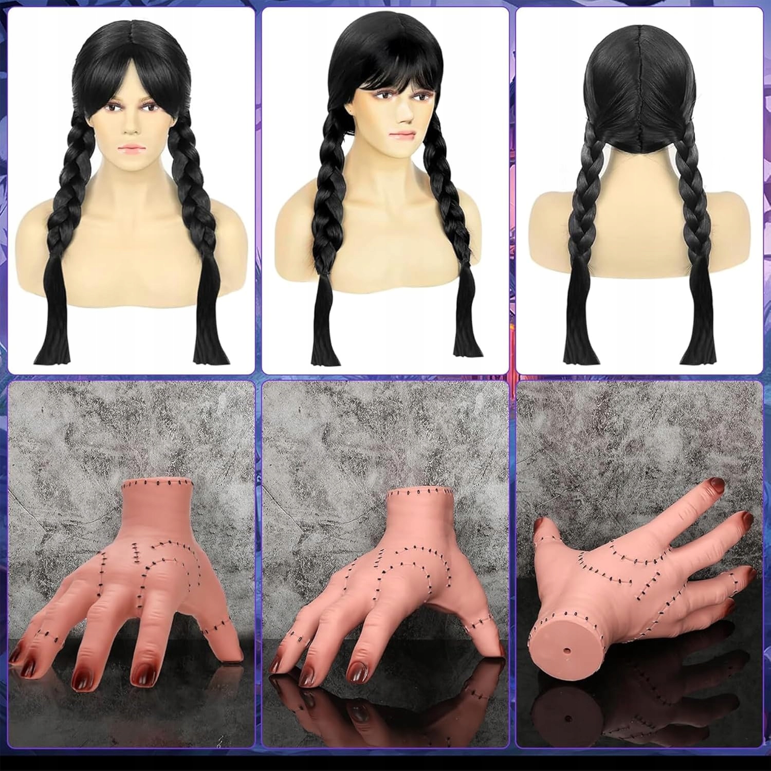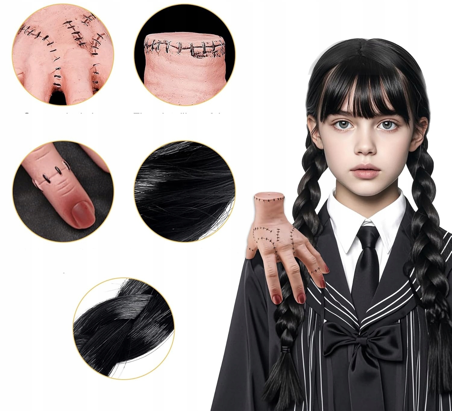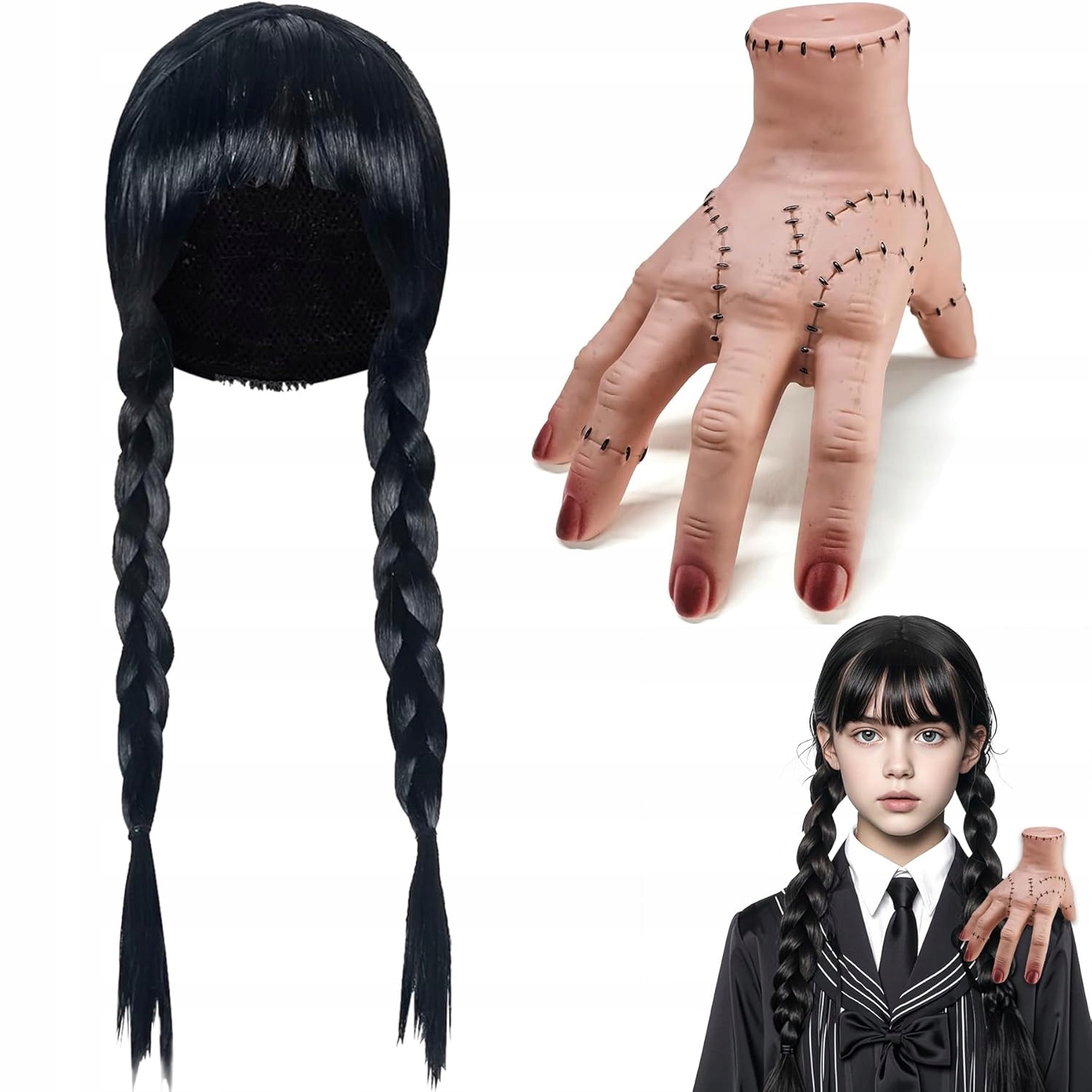 ЧОРНА БРИТАНСЬКА ПЕРУКА З РУЧКОЮ ДЛЯ КОСПЛЕЮ WEDNESDAY