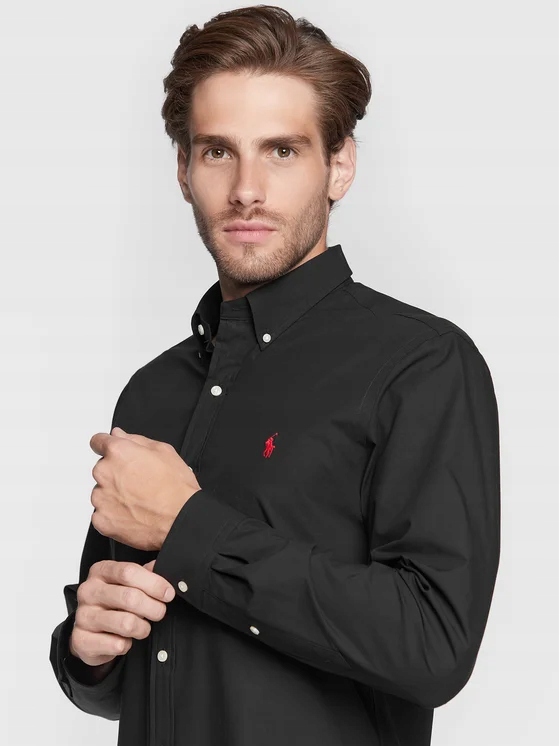Чоловіча чорна сорочка Polo Ralph Lauren. Приталений, еластичний матеріал. На грудях червоний вишитий кінь.