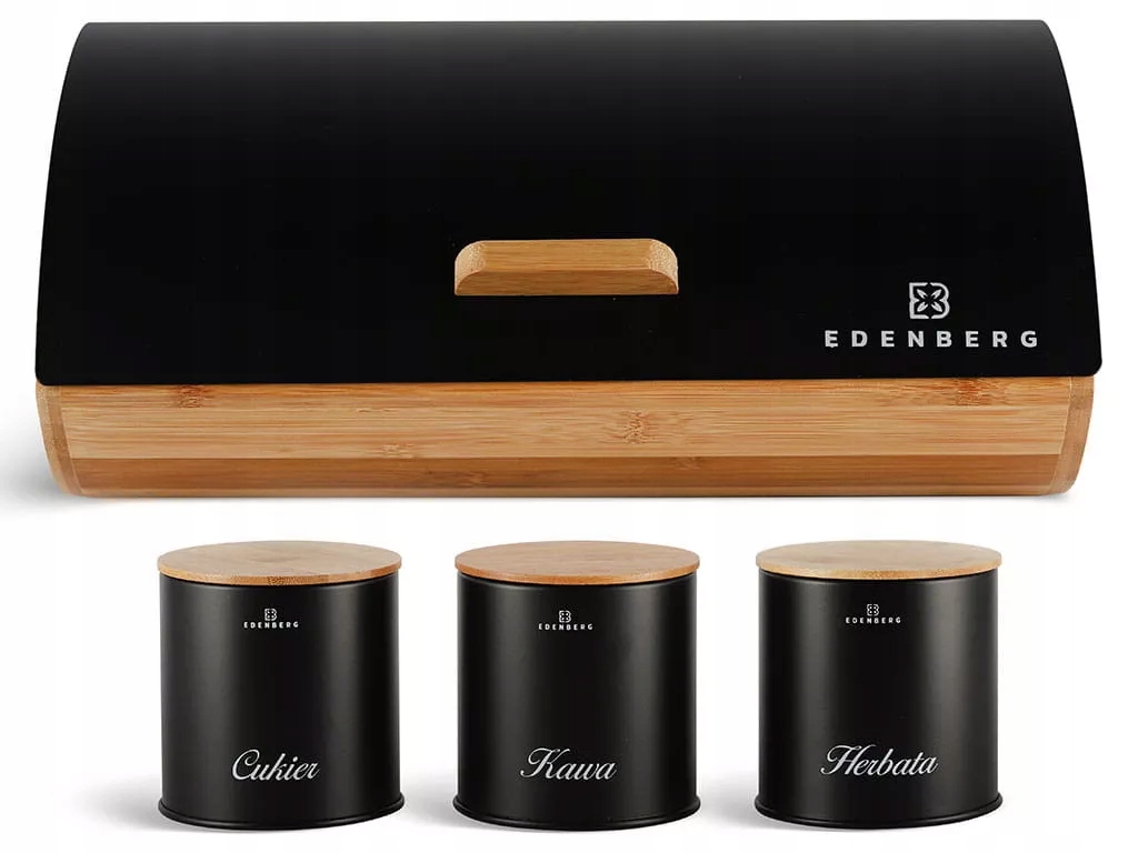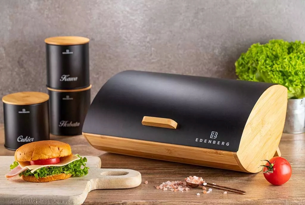 Чорна дерев'яна хлібниця Edenberg EB 139, набір з 3 контейнерів