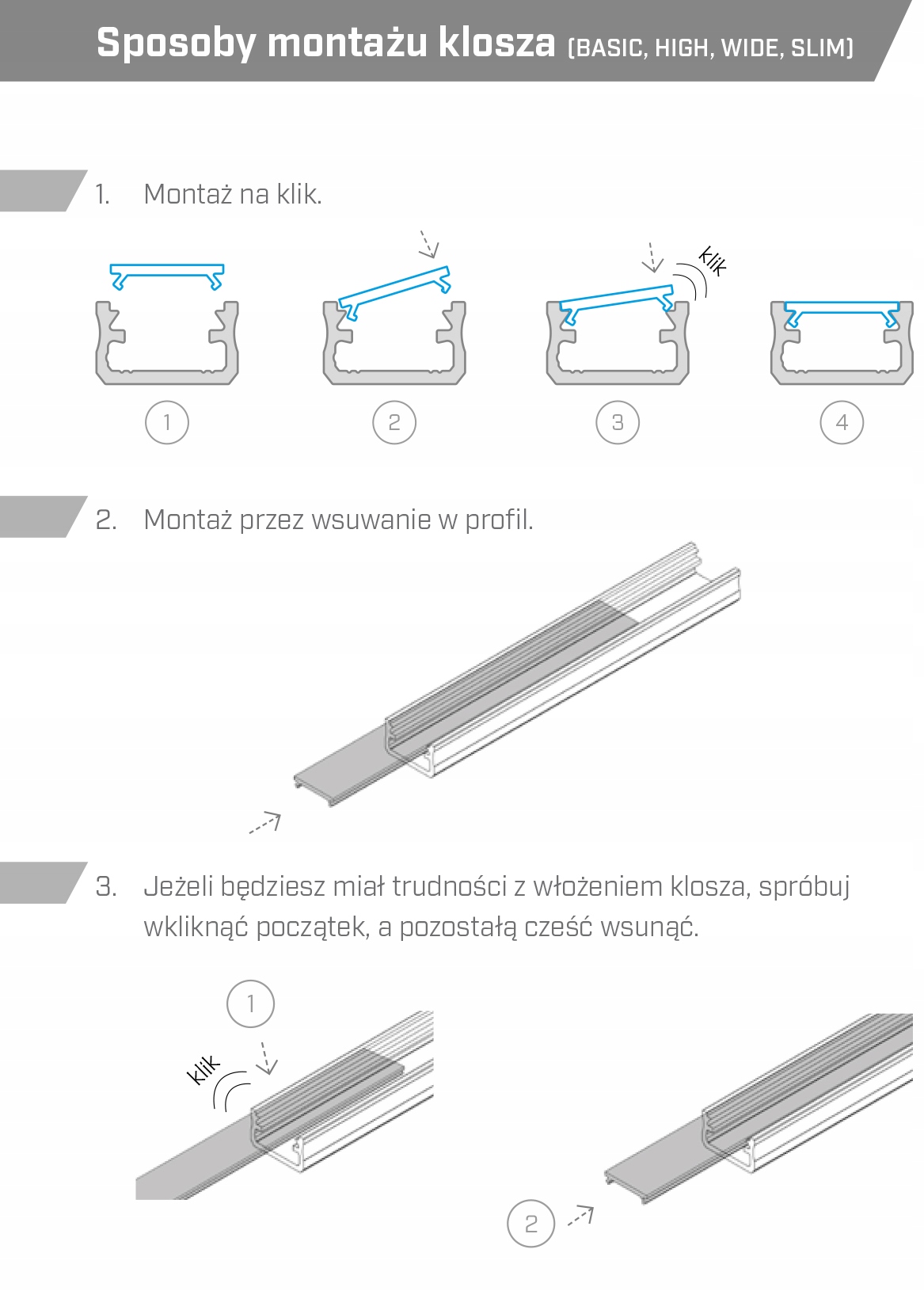 - ❌MILKY - біле покриття (найпопулярніший) – внутрішня частина профілю непомітна, він дуже добре розсіює світлі точки