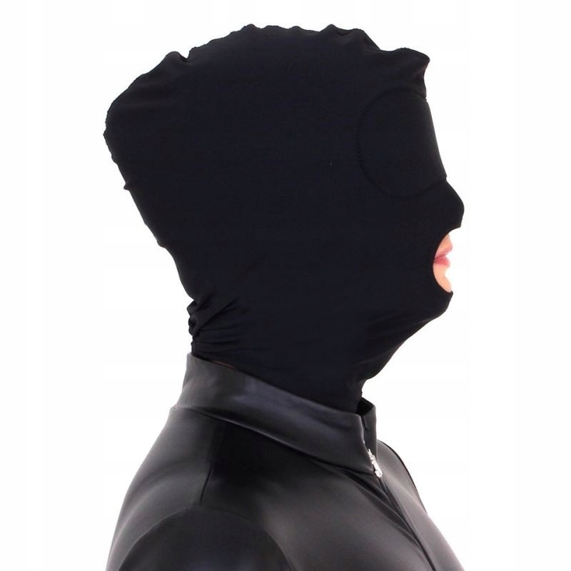 Зручна чорна маска для атмосферного вечора. Ви можете використовувати цю маску, наприклад, на фетиш -вечірці або під час сеансу BDSM. Гнучка тканина досить тонка, щоб вільно дихати. Підходить для початківців у неволі. Маска має отвір висоти губи,