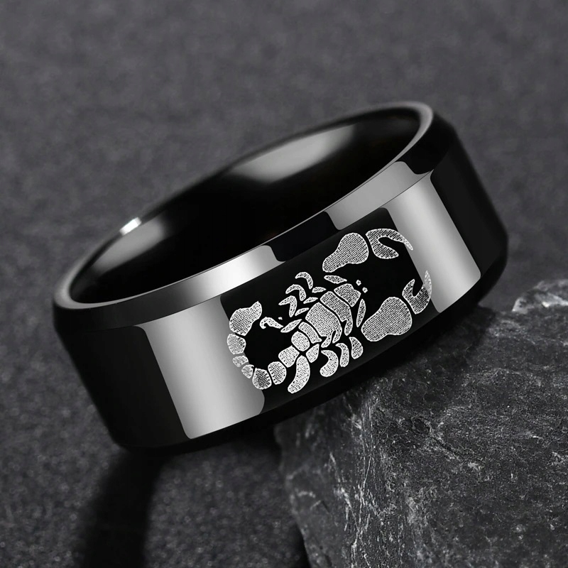 ЧОРНА ГЛАДКА ОБРУЧКА З ПЕЧАТКОЮ СКОРПІОН R21