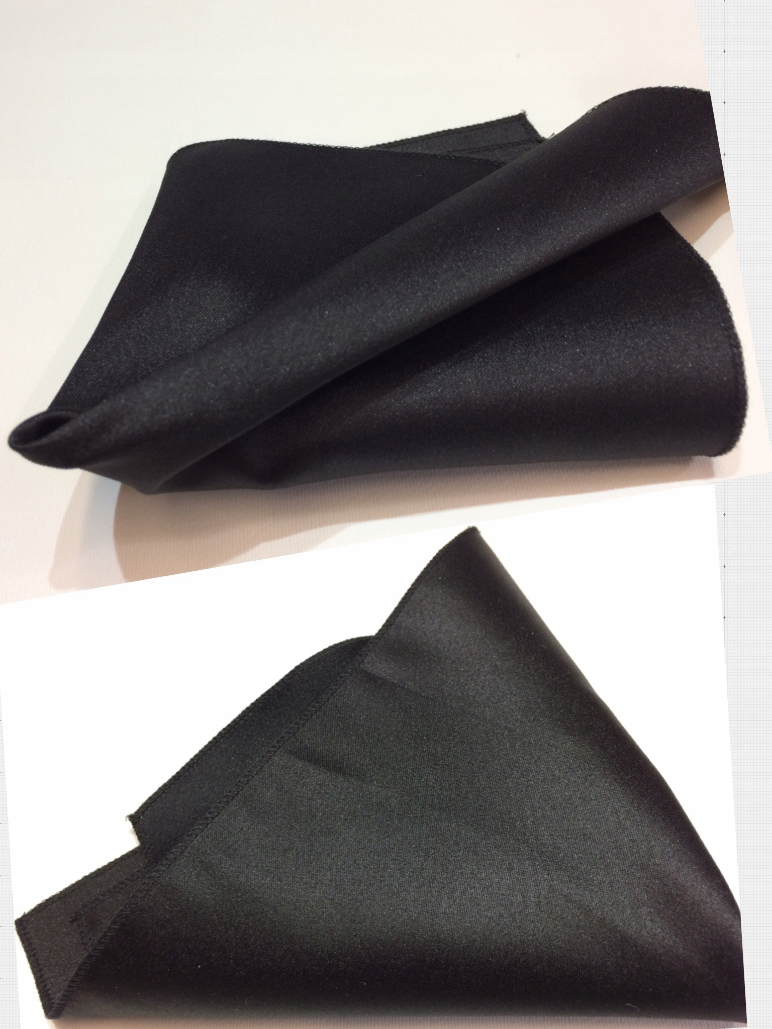 кишеньковий квадрат матовий з одного боку і блискучий з іншого. Краї карману ретельно оброблені. Його можна скласти будь-яким способом.
