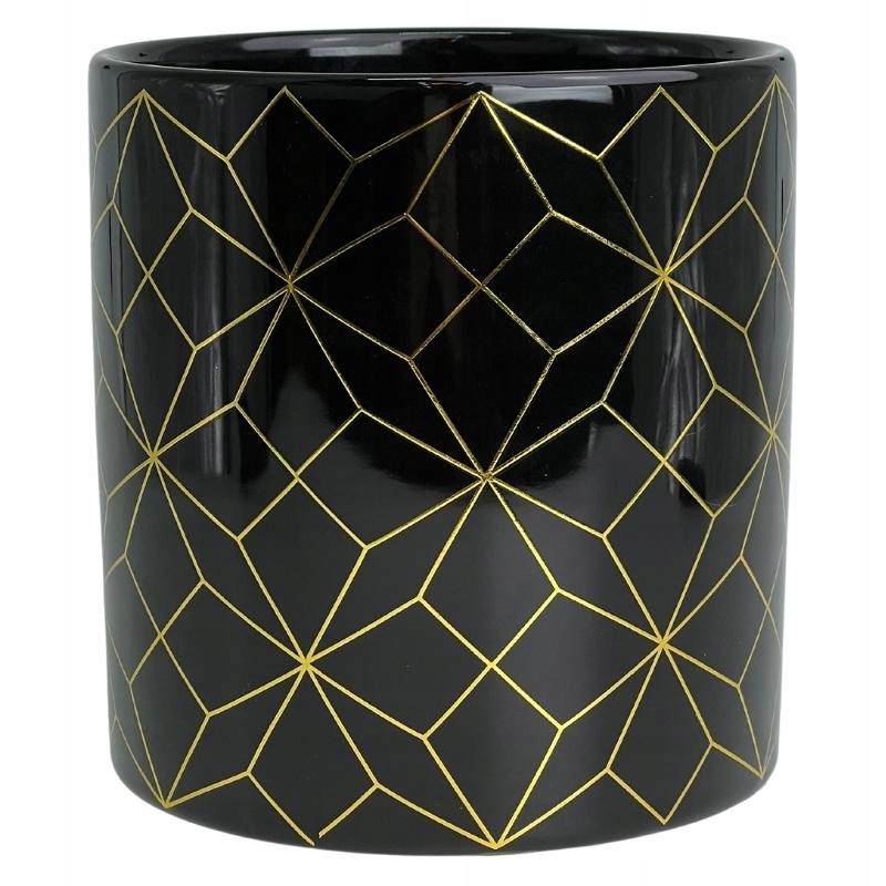Чорна кришка вазона із золотим геометричним візерунком