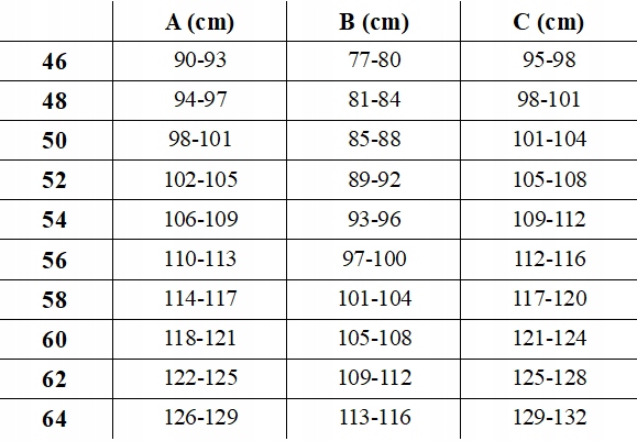 a: окружність грудей/грудей - чоловіки ведуть сантиметр на пахви. У дами стрічка повинна бути обмотана навколо бюста, у найширшій частині тулуба.
