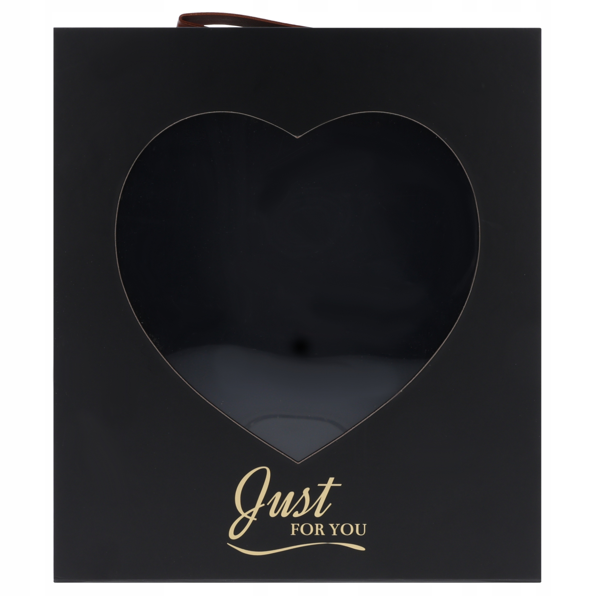 Вражаюча подарункова коробка з прозорим серцем -урядом та золотим написом просто для вас.