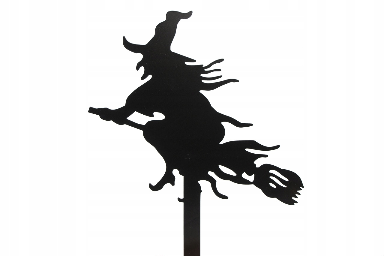 Прикраса у вигляді відьми на мітлі з чорного металу. Прикрасу можна помістити в квітковий горщик, композицію або в землю в саду. Підсвічування ззаду додасть акценту на Хелловін.