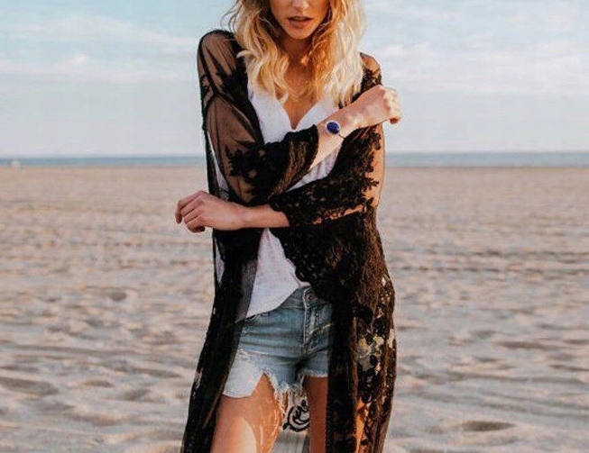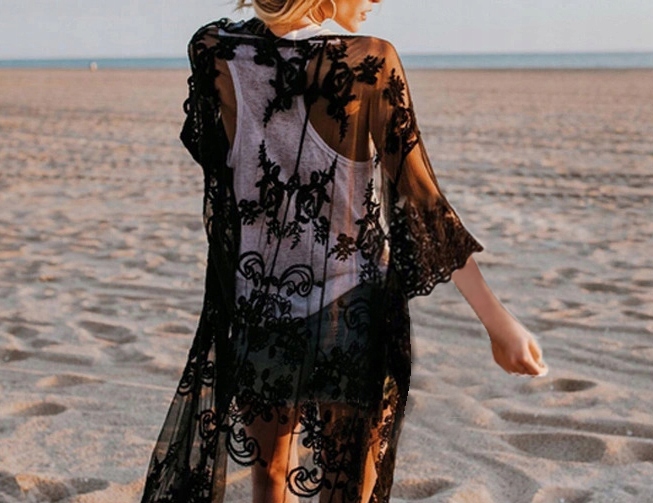 Чорна накидка в стилі бохо BEACH SUMMER з мереживом ПАРЕО