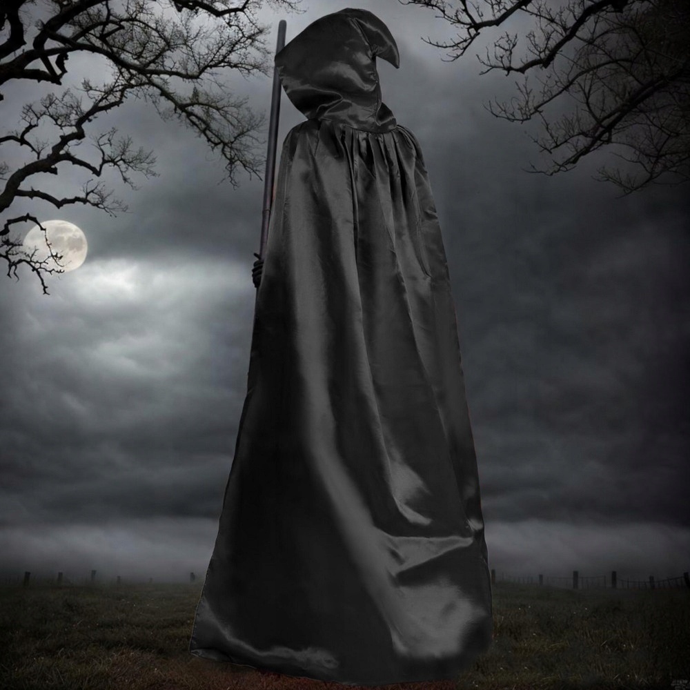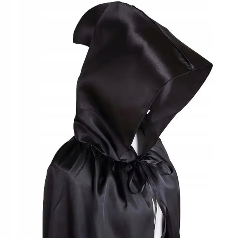 ЧОРНА НАКИДКА З КАПЮШОНОМ 150 КОСТЮМ ВАМПІРА ЧАРІВНИКА КОСТЮМ НА ХЕЛОВІН