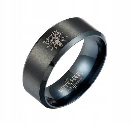 Чорна обручка з логотипом The Witcher, сталь 316L