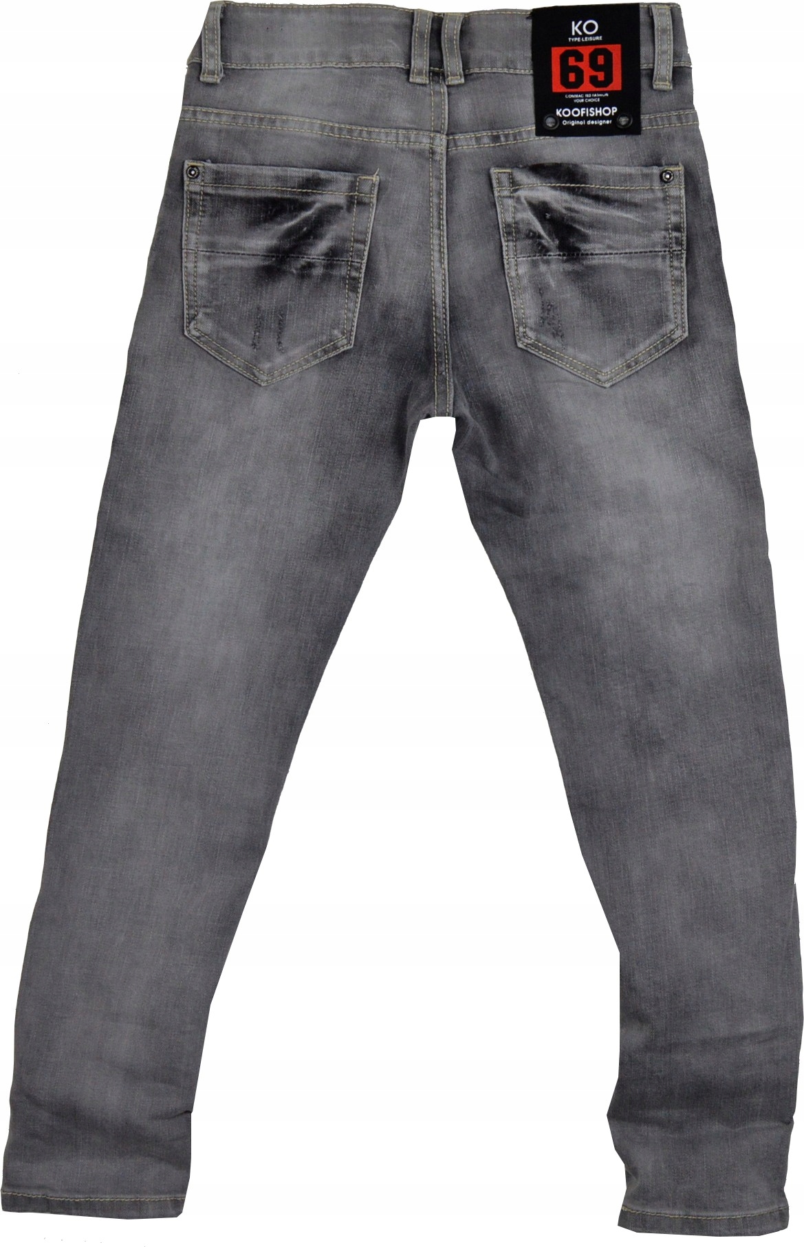 Довгі ніжки прикрашений потертостями та імітацією дірок.
