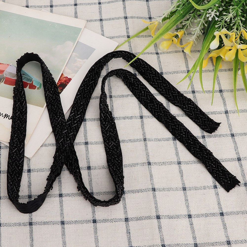 Стрічка з перламутровою стрічкою 1 ярд. Вишитий одяг ручної роботи. Аксесуари для шиття (чорні подвійні вісім трубчастих намистин 1,5 см)