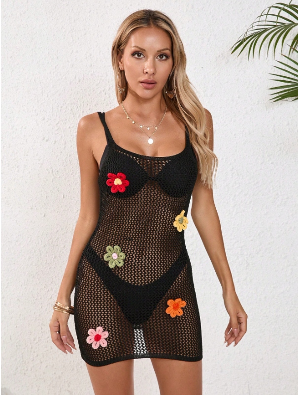 ЧОРНА ПЛЯЖНА ТУНІКА SHEIN ІЗ КВІТКОВИМ МОТИВОМ S 718